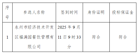 本項(xiàng)目于2025年09月11日10時(shí)00分在湖南省永州市冷水灘區(qū)長(zhǎng)豐集團(tuán)辦公樓二樓評(píng)標(biāo)室進(jìn)行了開(kāi)標(biāo)評(píng)標(biāo)活動(dòng),但在開(kāi)標(biāo)截止時(shí)間前提交參選文件的參選人只有一個(gè),根據(jù)比選文件相關(guān)規(guī)定,本次比選擬做流標(biāo)處理,具體評(píng)審情況如下: