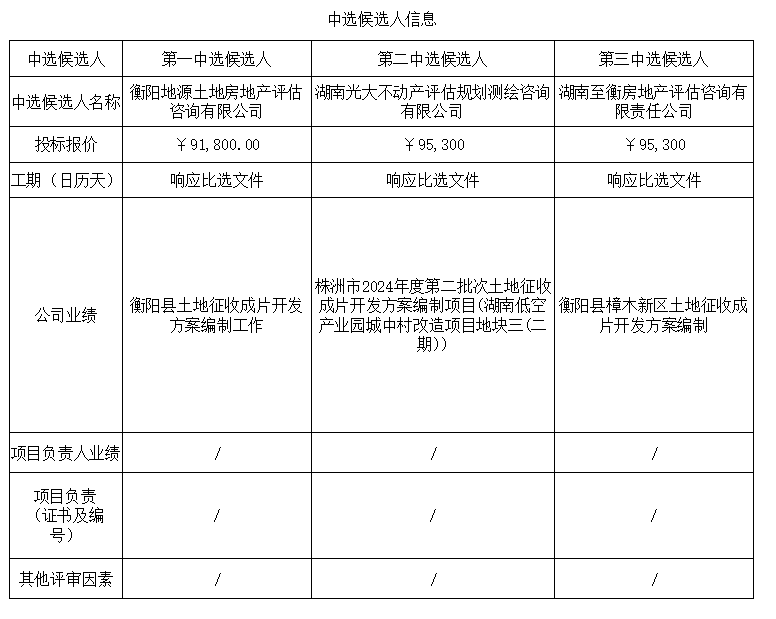 衡陽市植物園片區(qū)三宗土地征收成片開發(fā)方案編制項目咨詢服務比選中選候選人公示